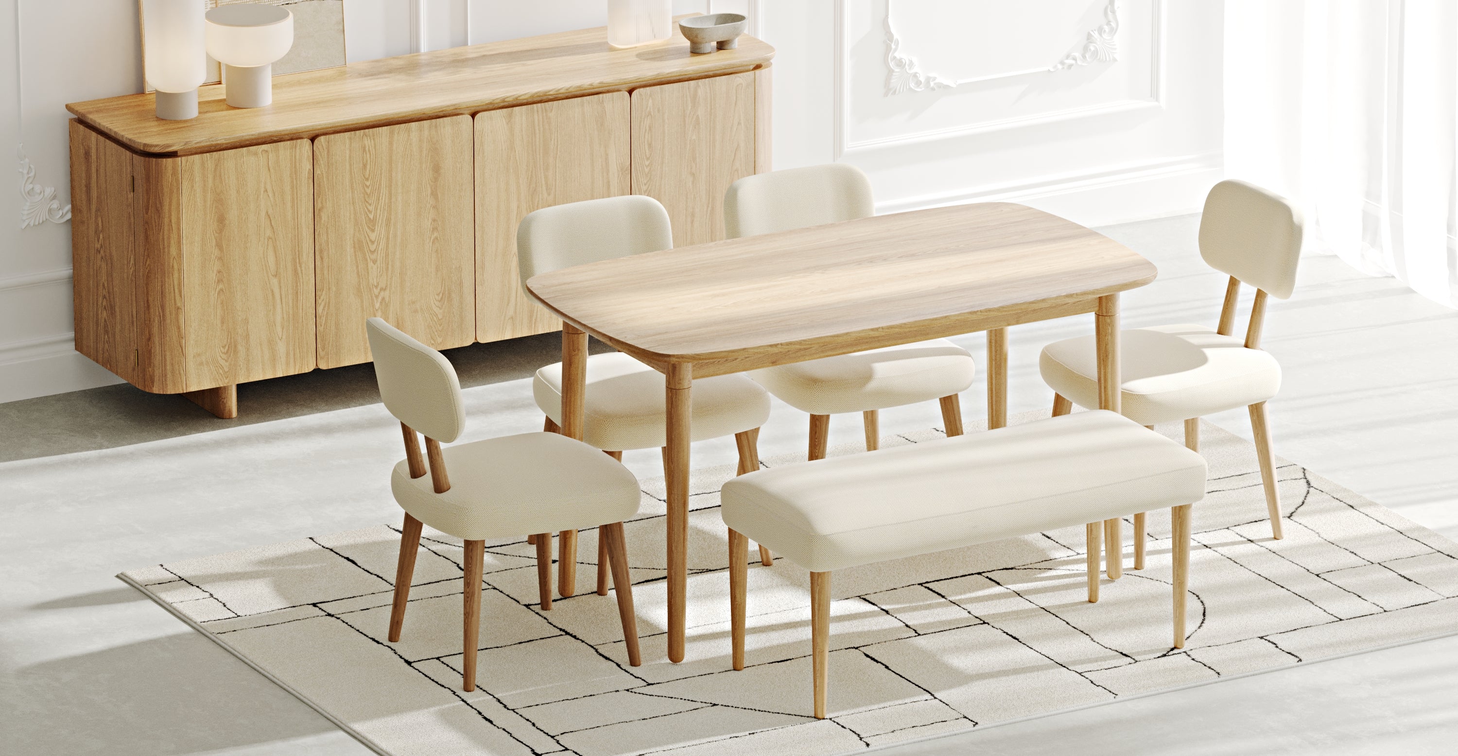 Normod'un yüksek kaliteli doğal meşeden üretilen Lyno yemek odası takımı ile yaşam alanını özelleştir ve estetiği günlük yaşamına taşı!
