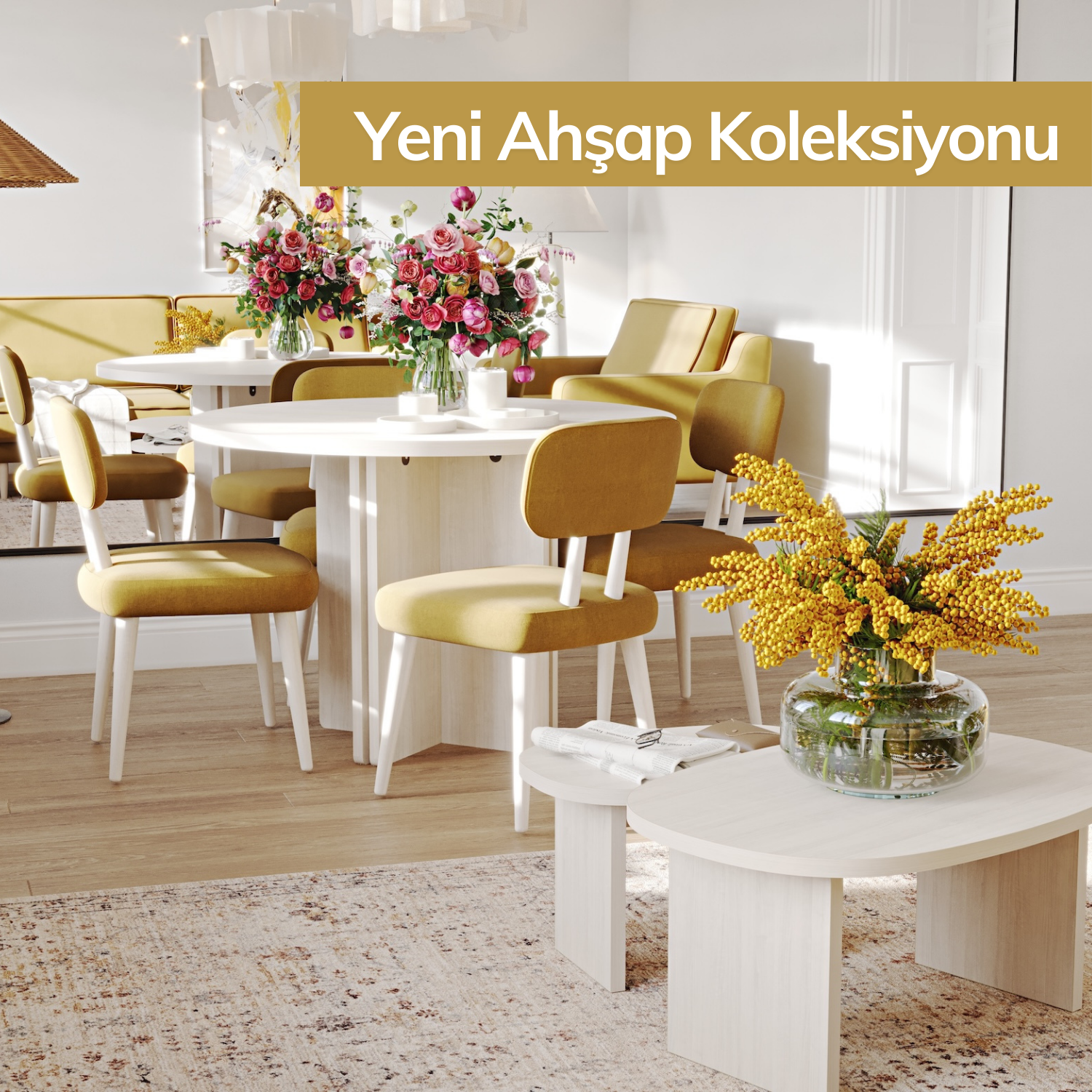 Yemek masasından sehpaya, şifonyerden komodine kadar uzanan yeni ahşap koleksiyonumuz, yaşam alanına konfor ve işlevsellik katmak için tasarlandı.