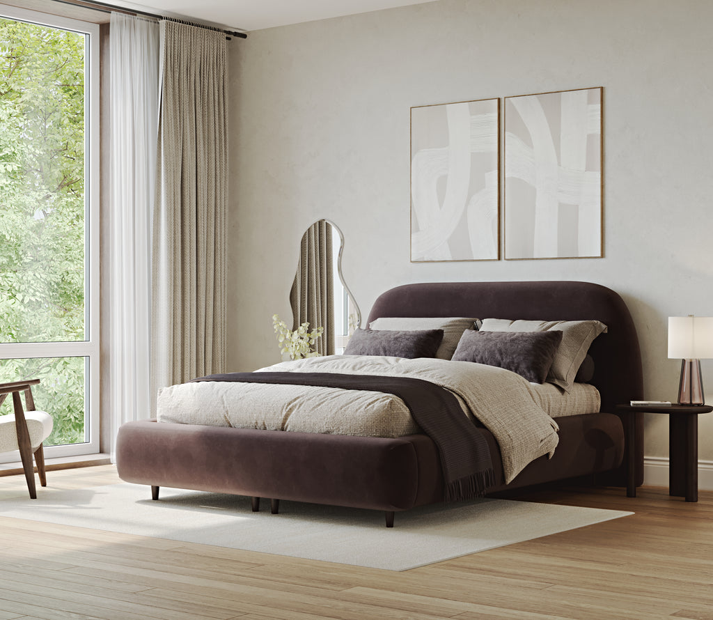 Klem Çift Kişilik Döşemeli Karyola - Kadife