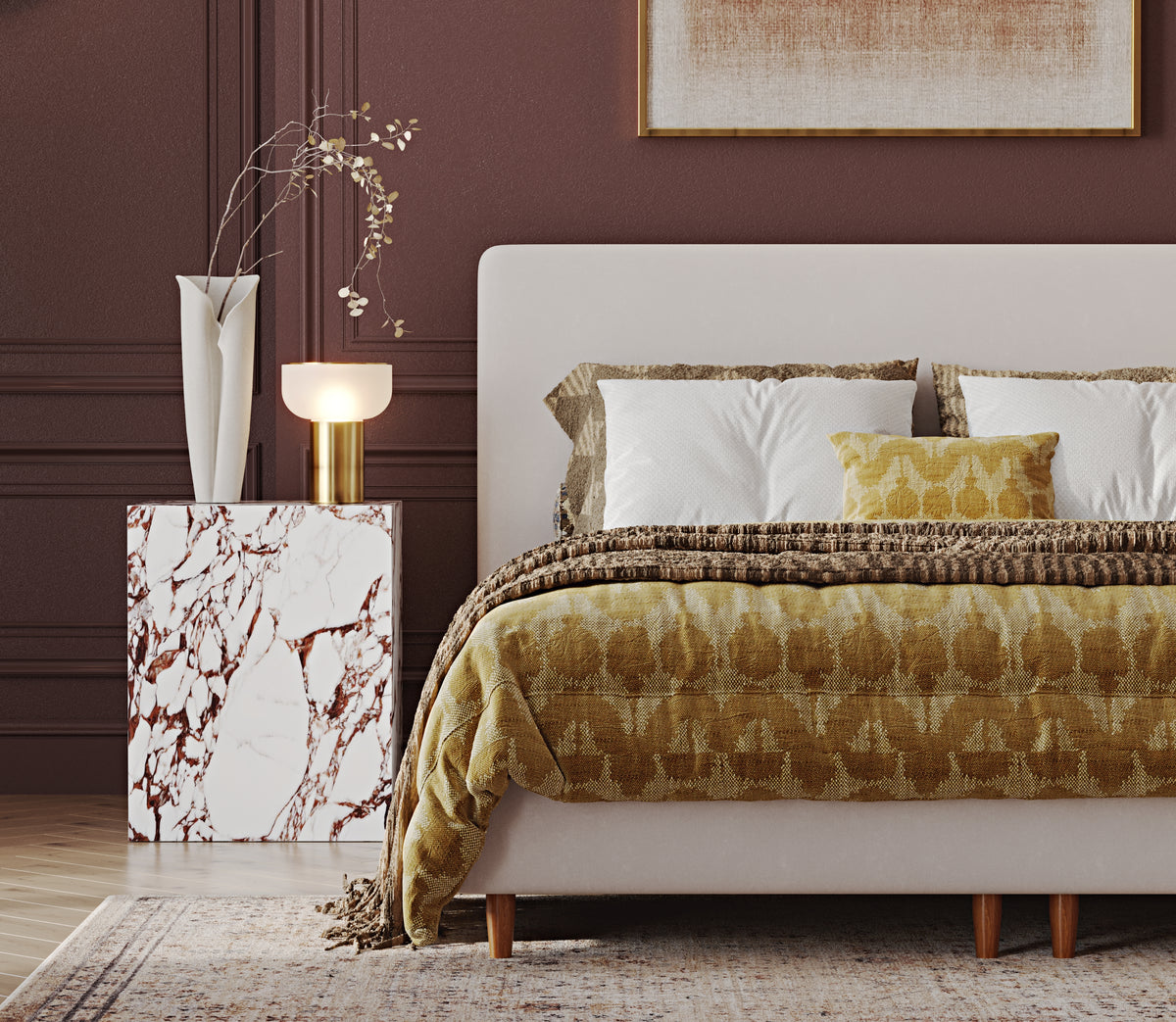 Klem Slim Çift Kişilik Bazalı Karyola - Kadife