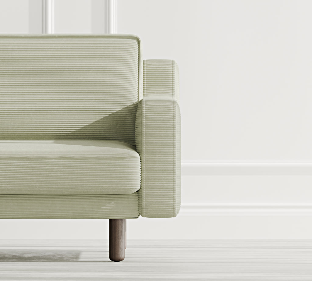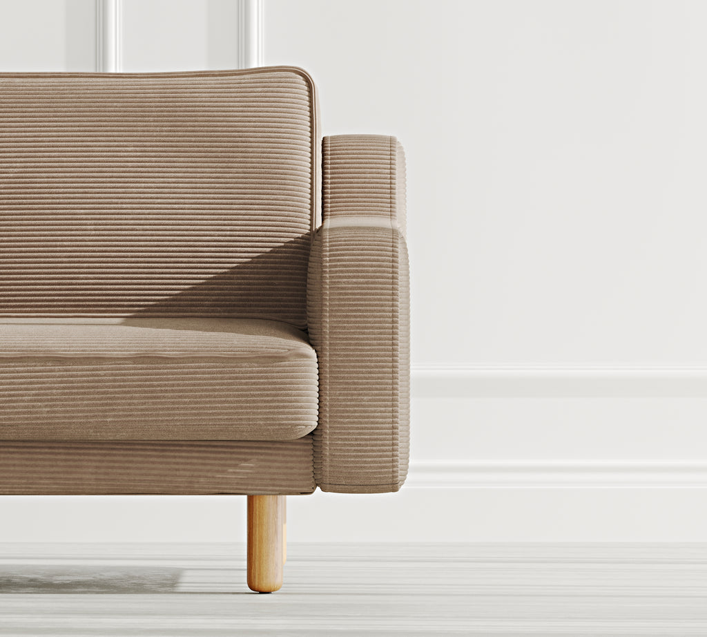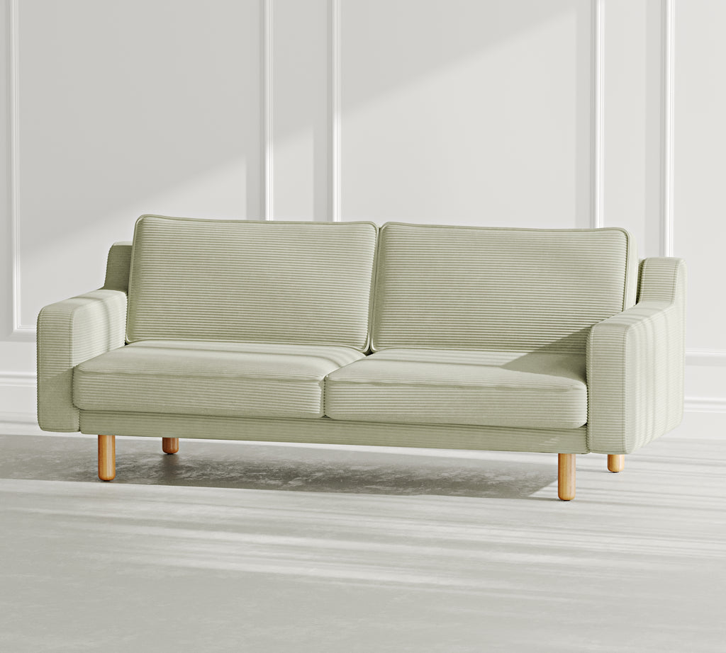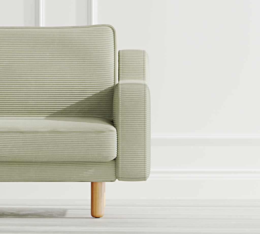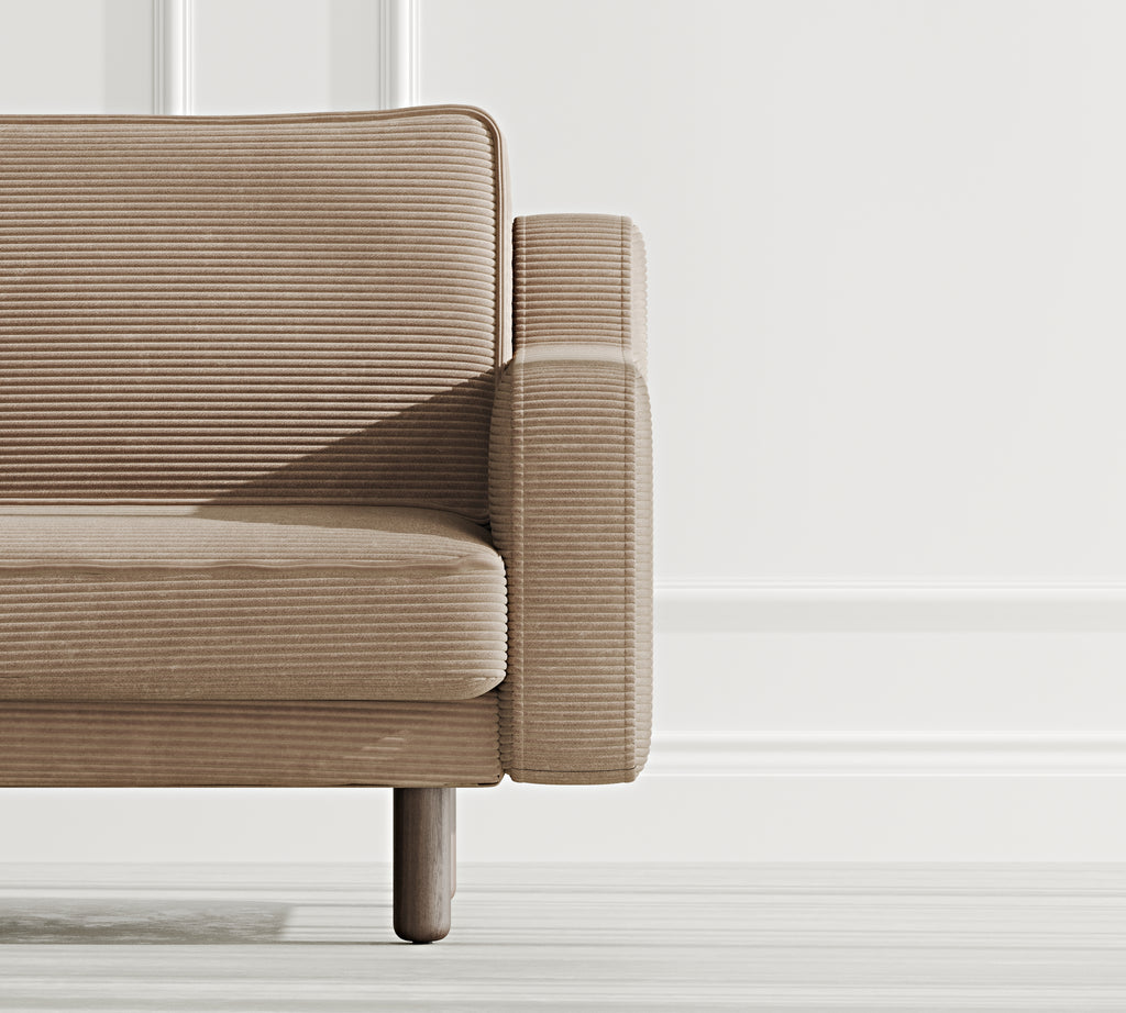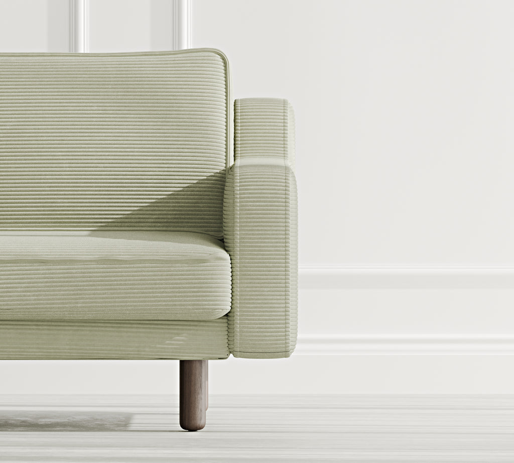 Klem Slim Üçlü Koltuk Silindir Ahşap Ayak - Fitilli Kadife