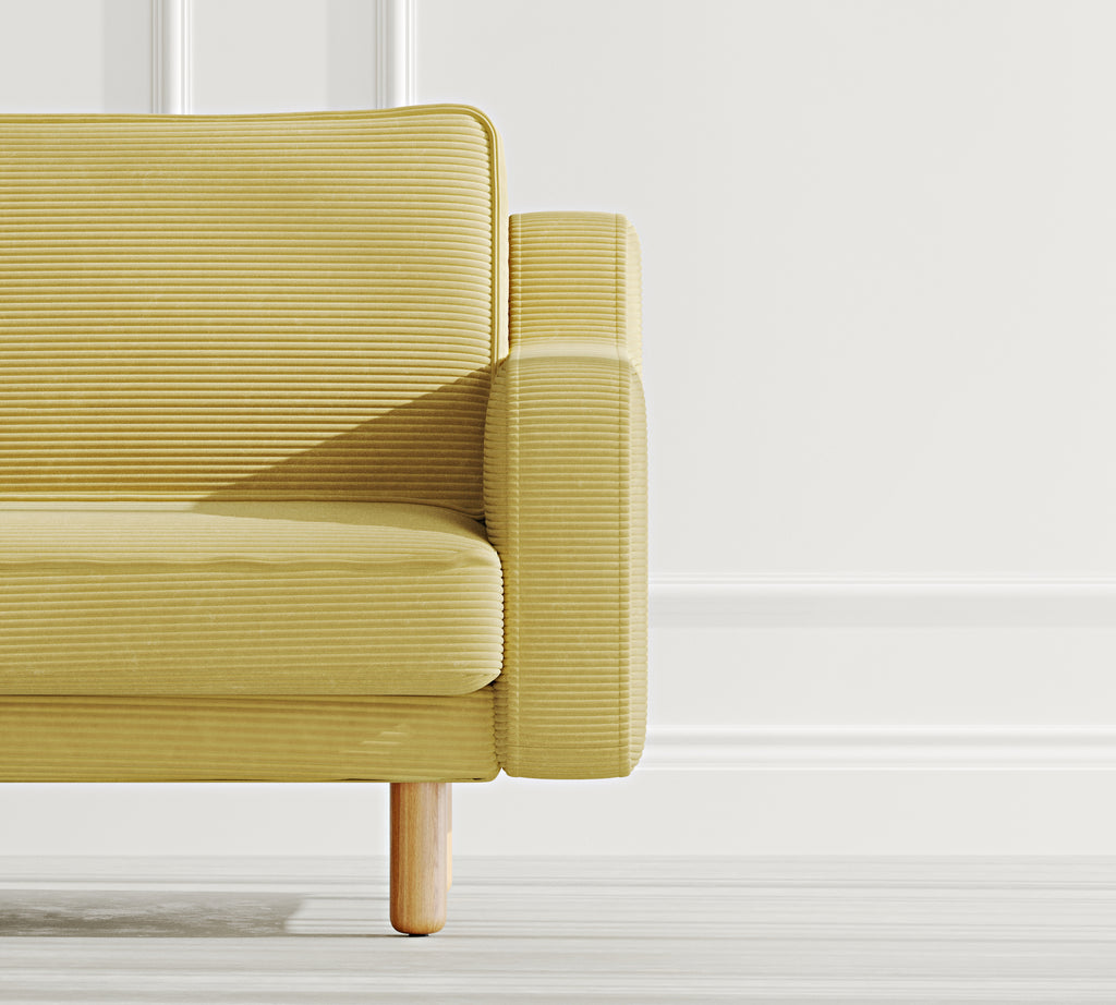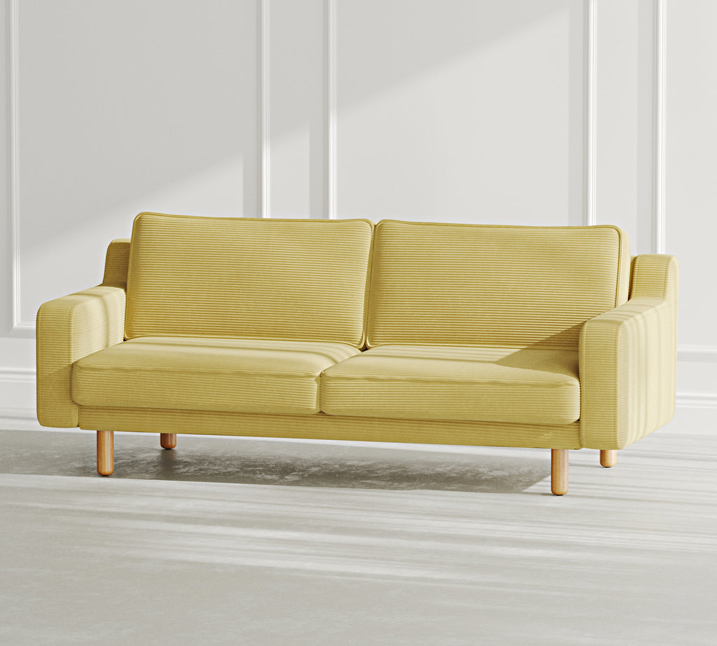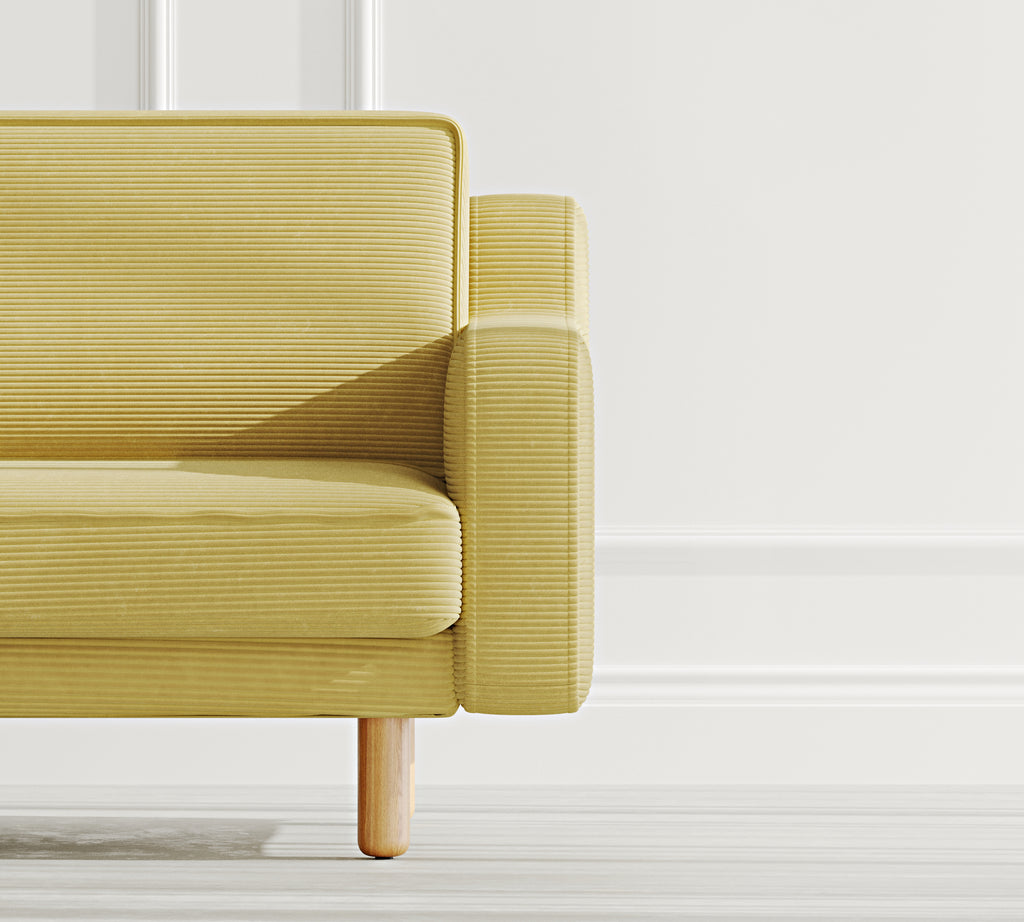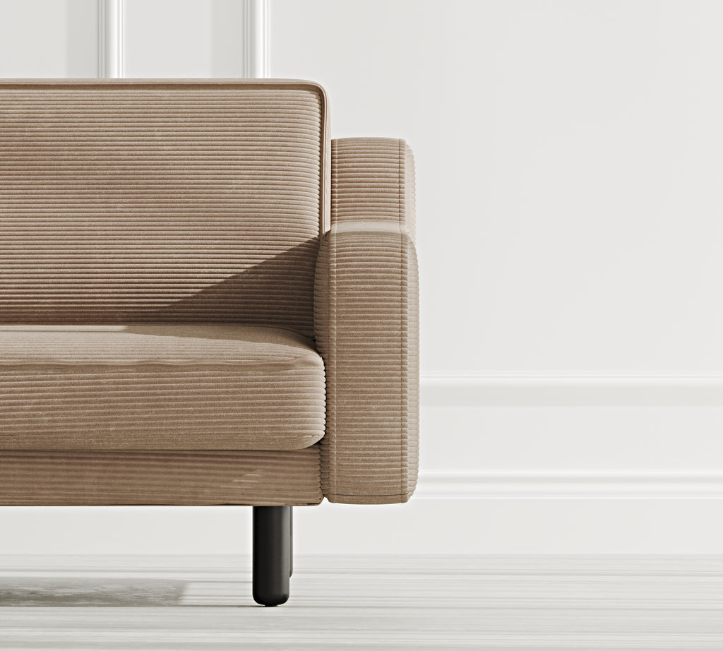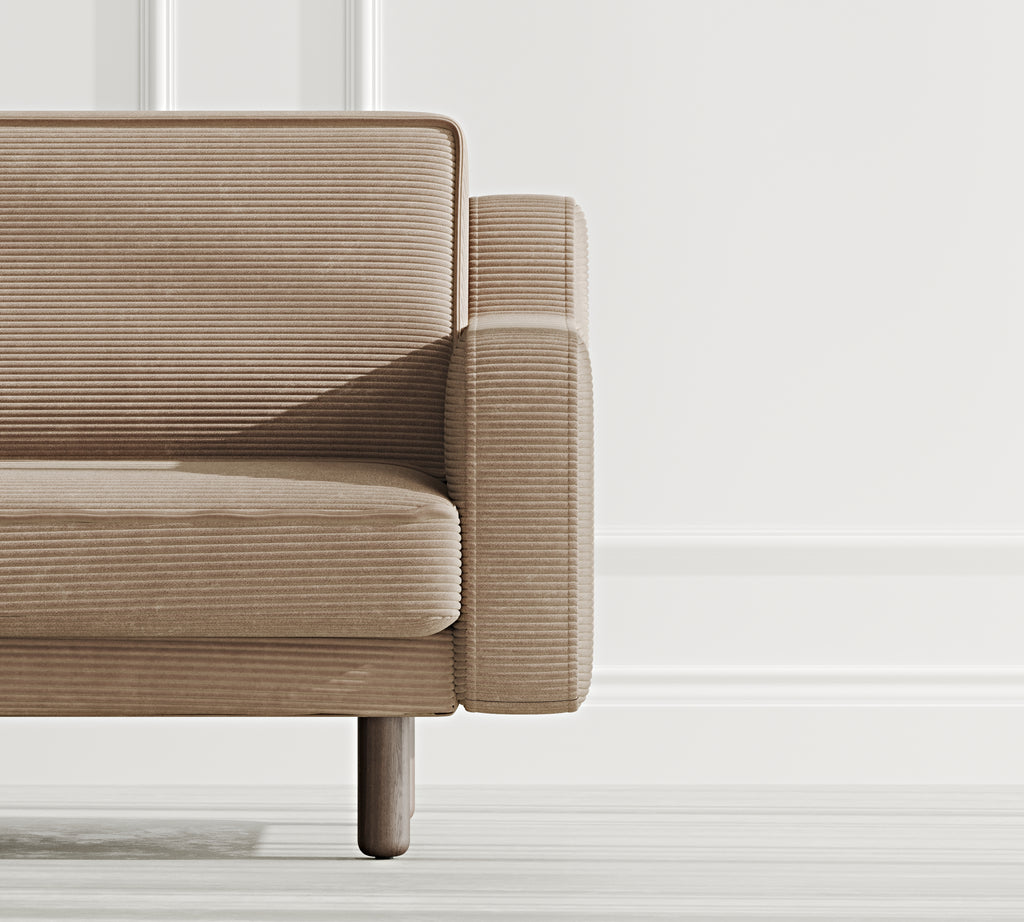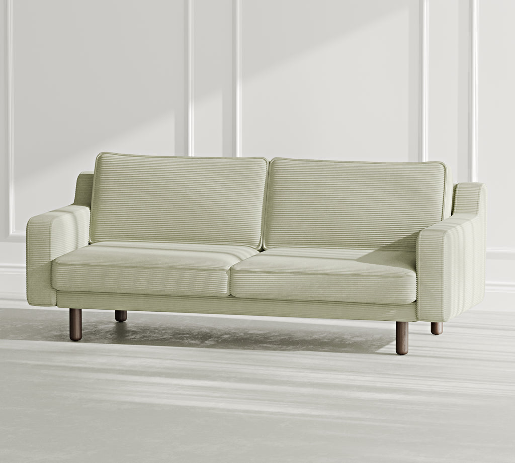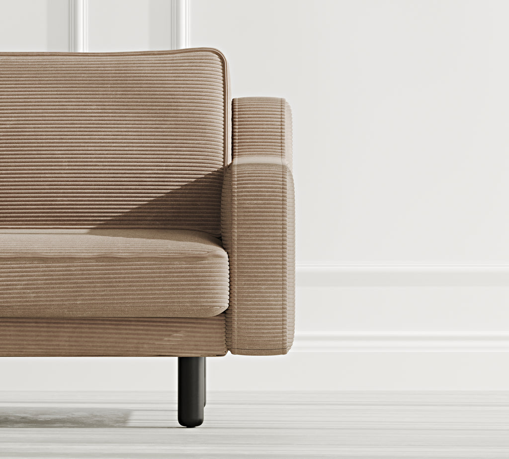Klem Slim Üçlü Koltuk Silindir Ahşap Ayak - Fitilli Kadife