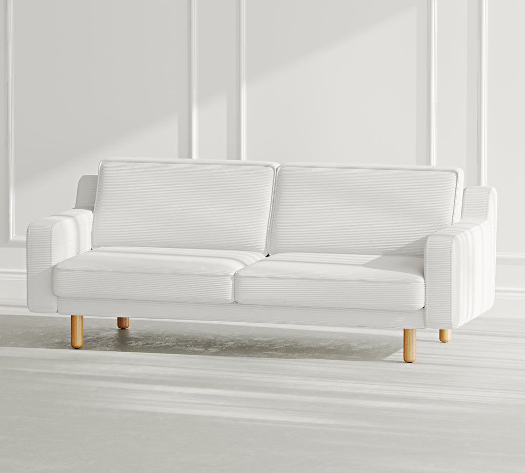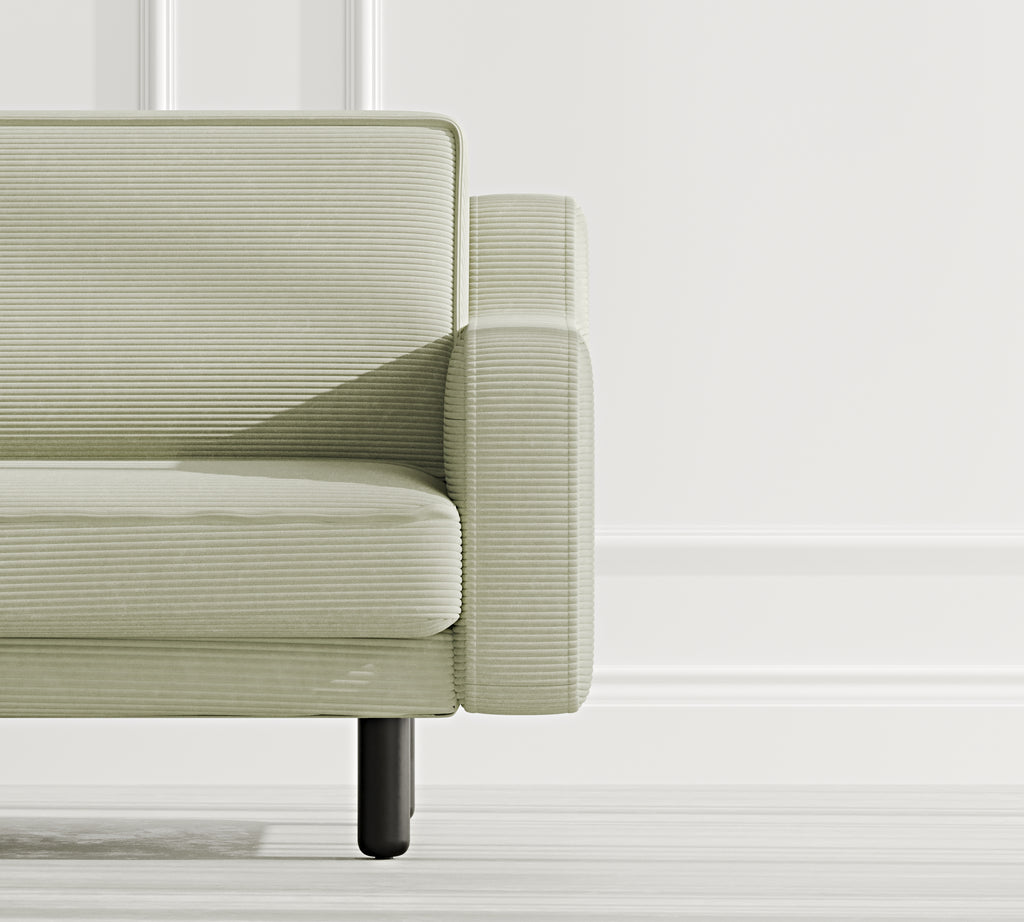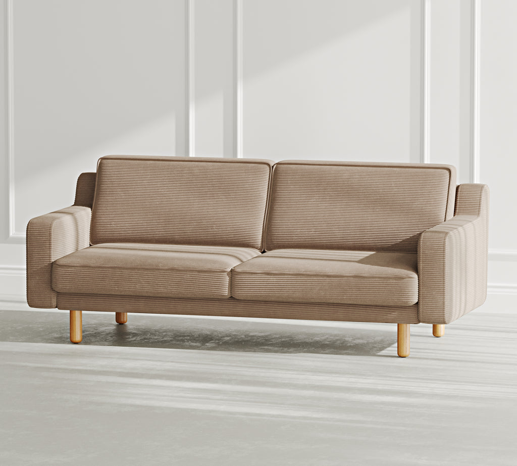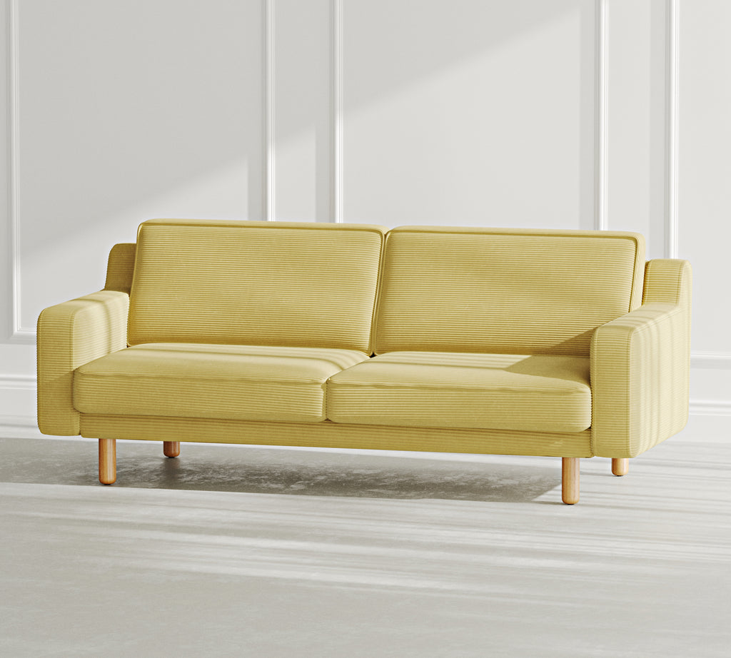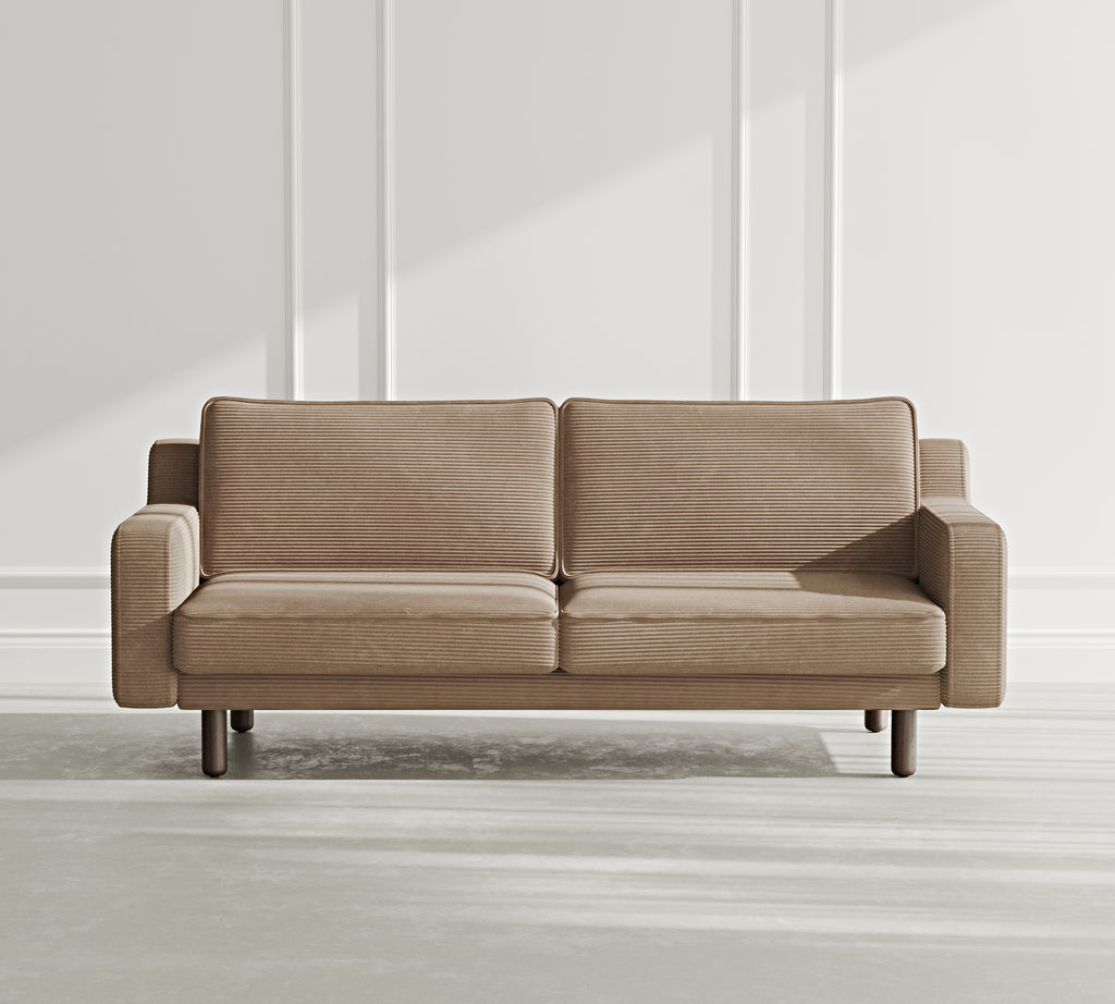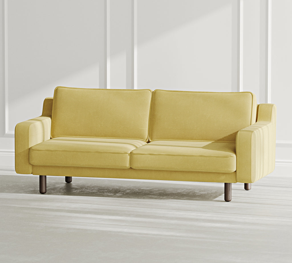 Klem Slim Üçlü Koltuk Silindir Ahşap Ayak - Fitilli Kadife