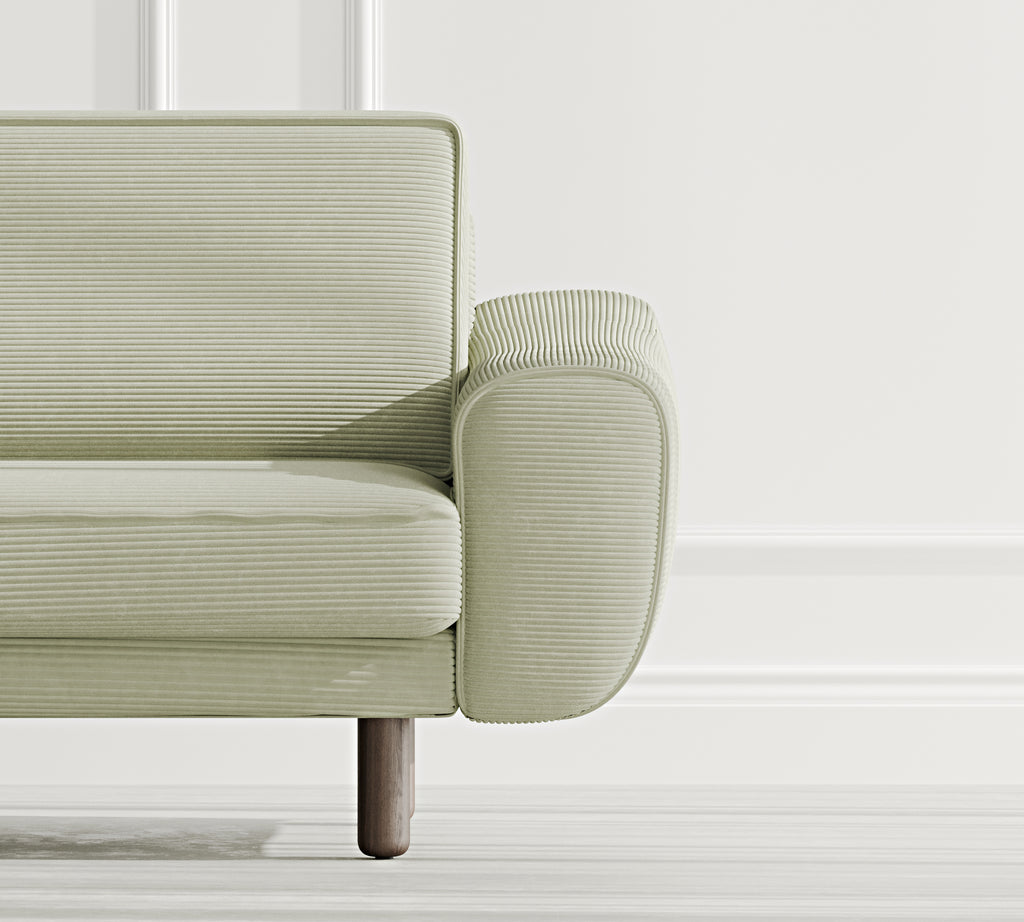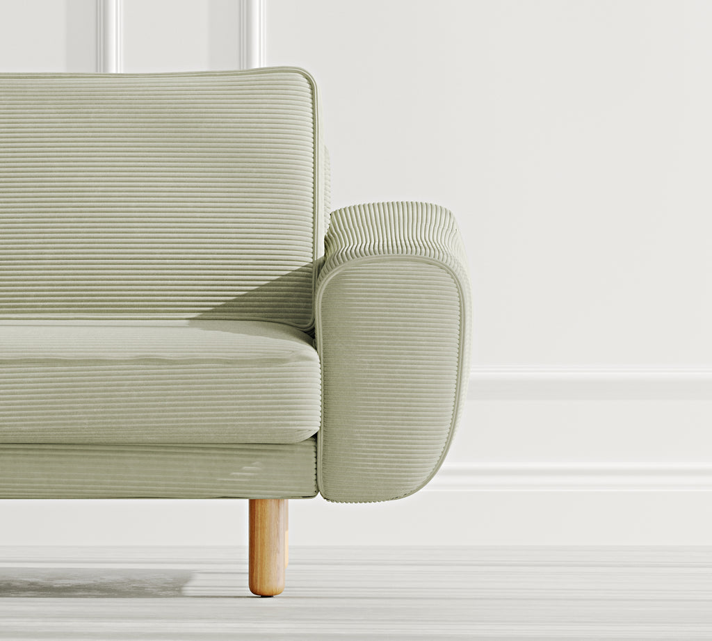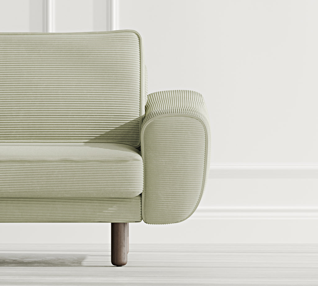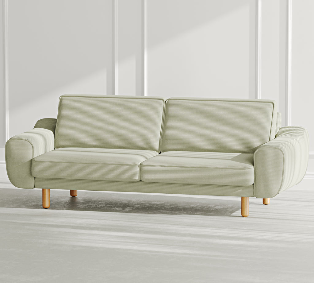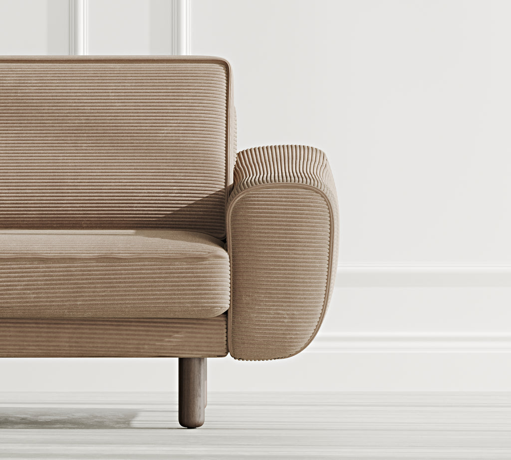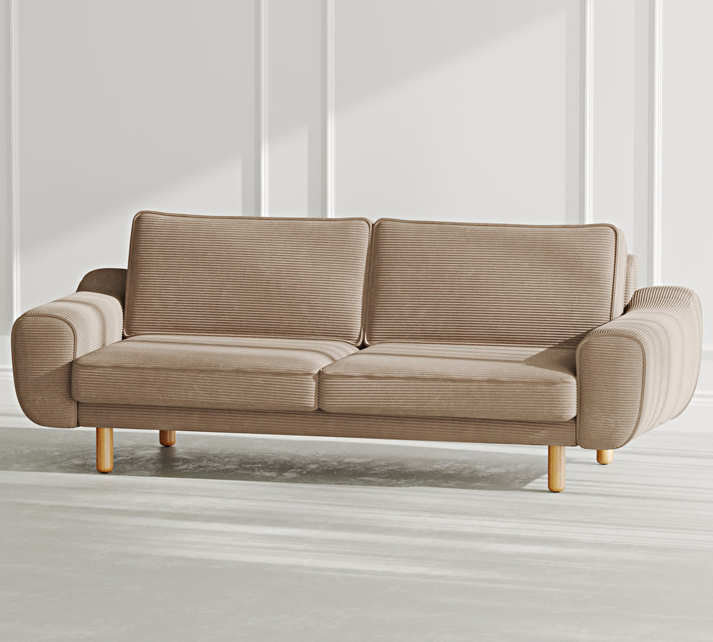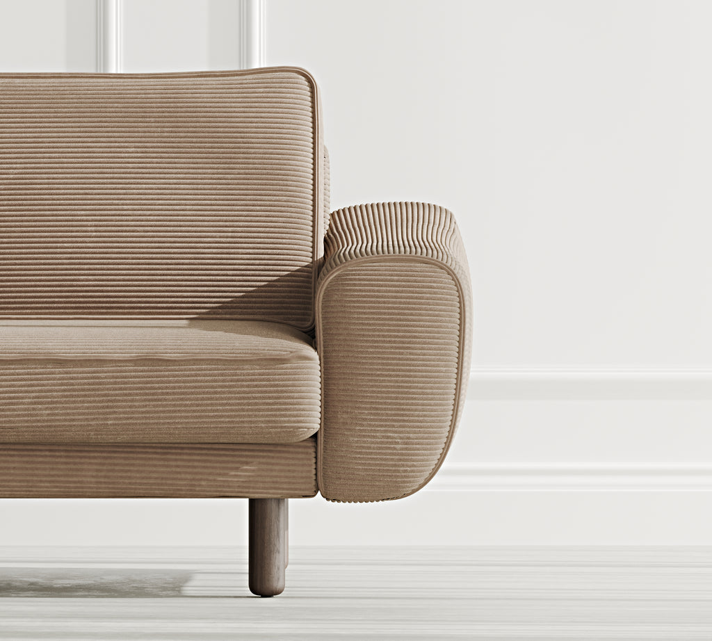 Klem Üçlü Koltuk Silindir Ahşap Ayak - Fitilli Kadife