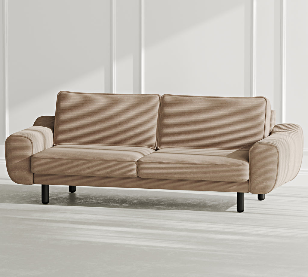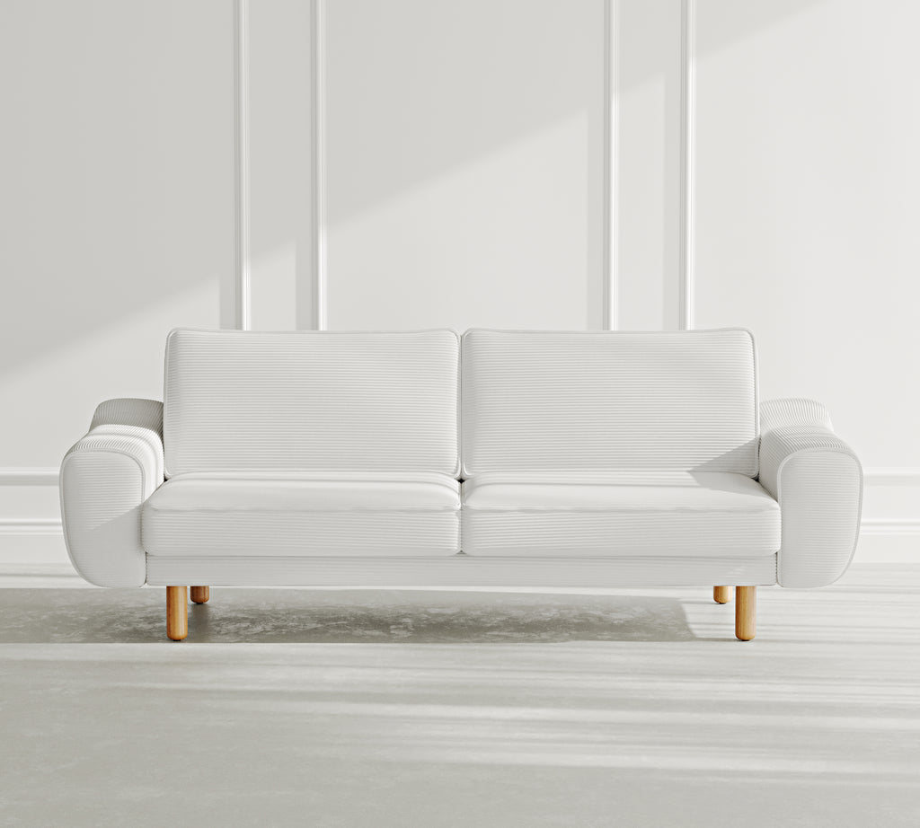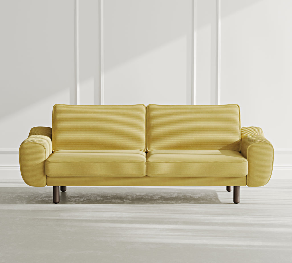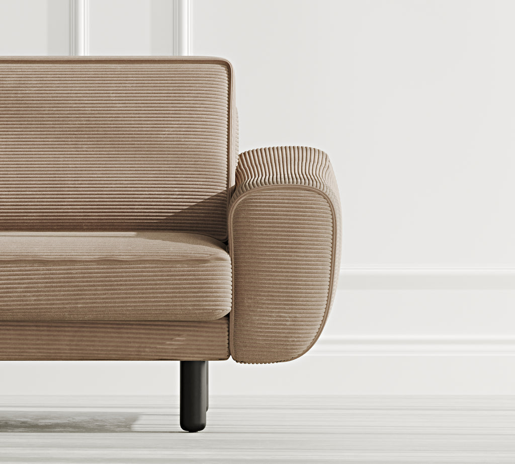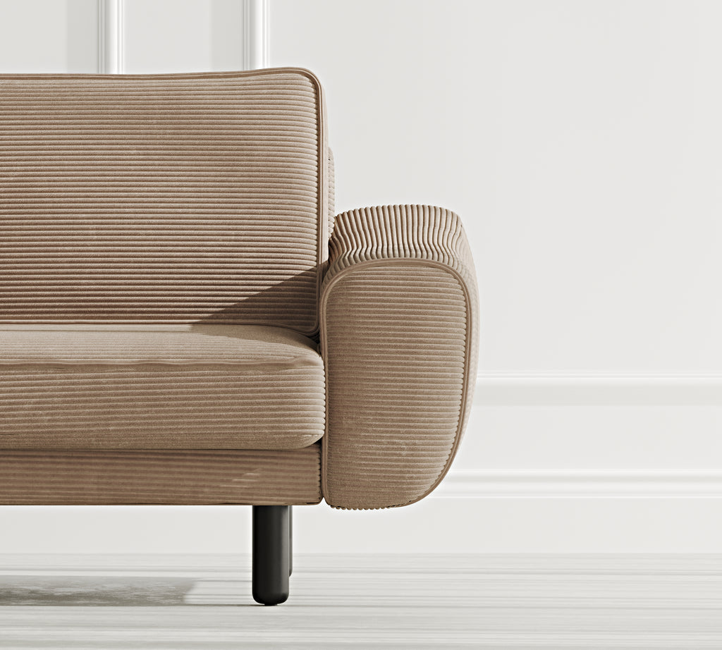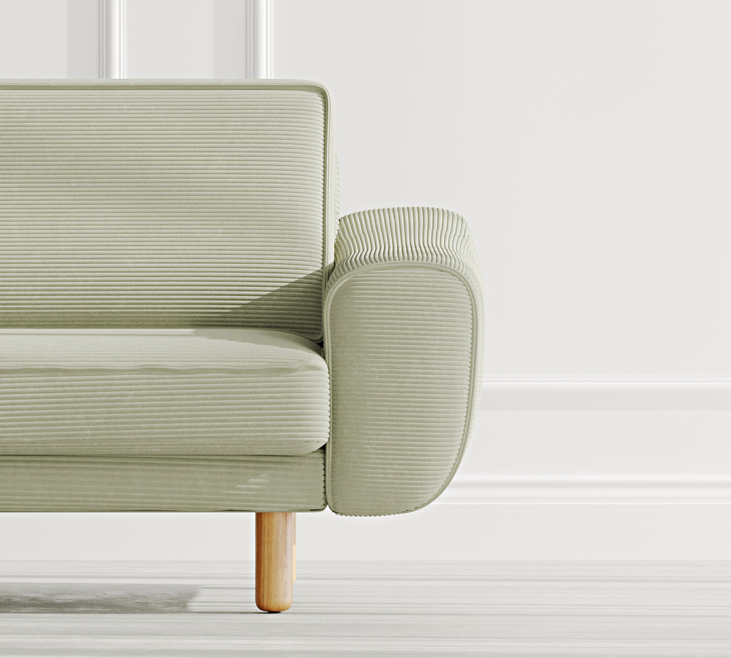 Klem Üçlü Koltuk Silindir Ahşap Ayak - Fitilli Kadife