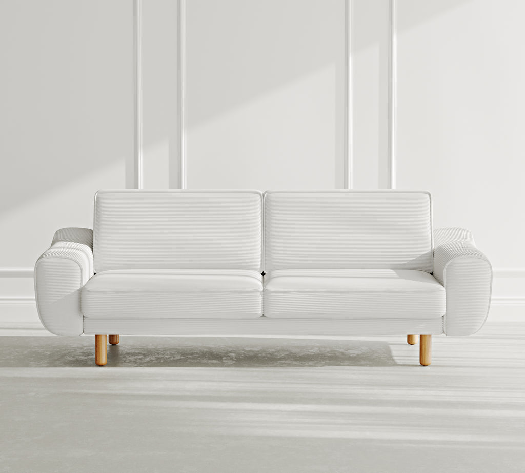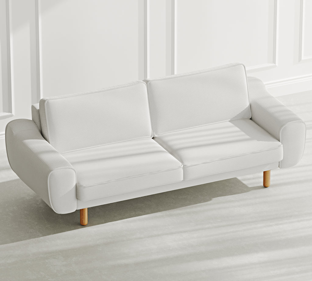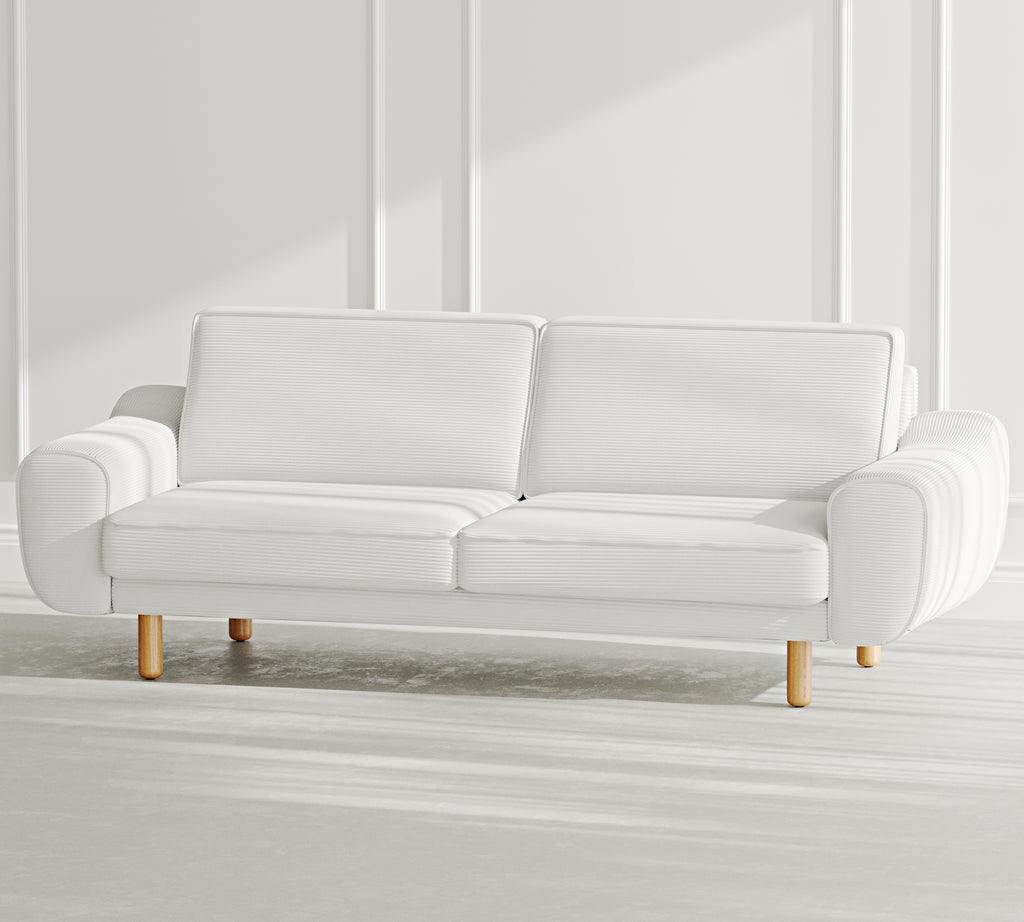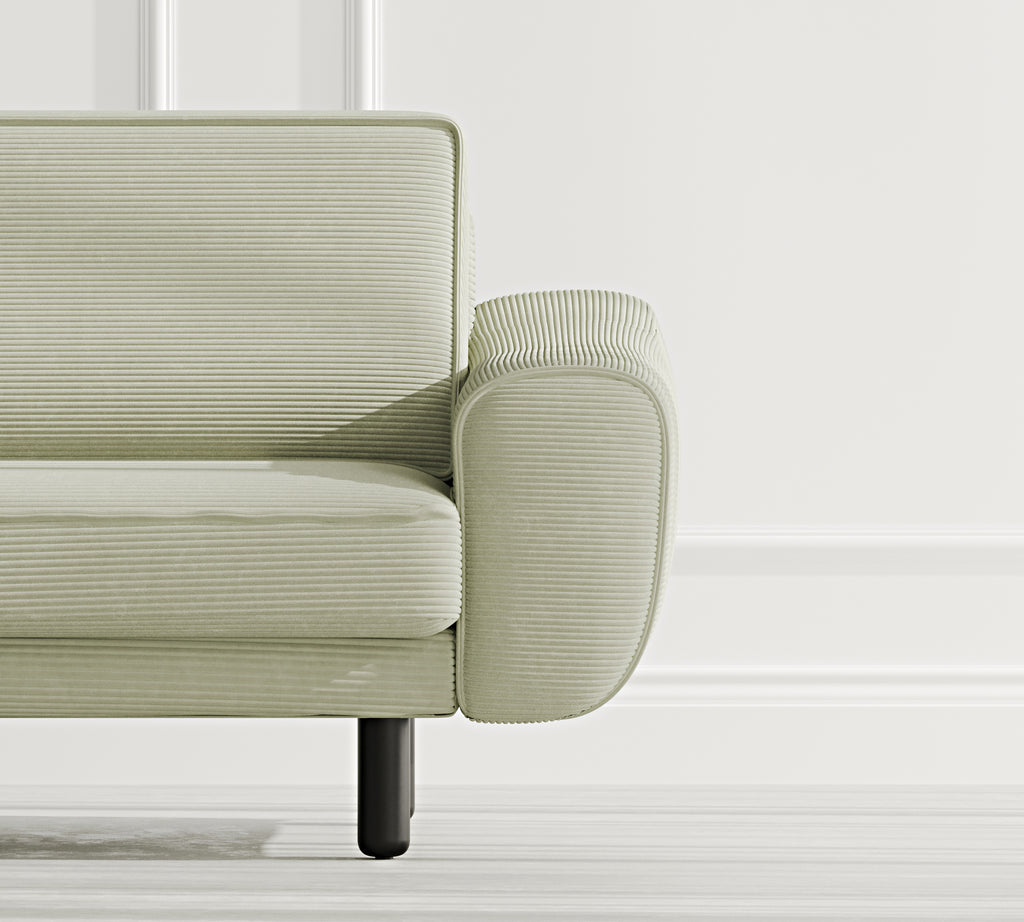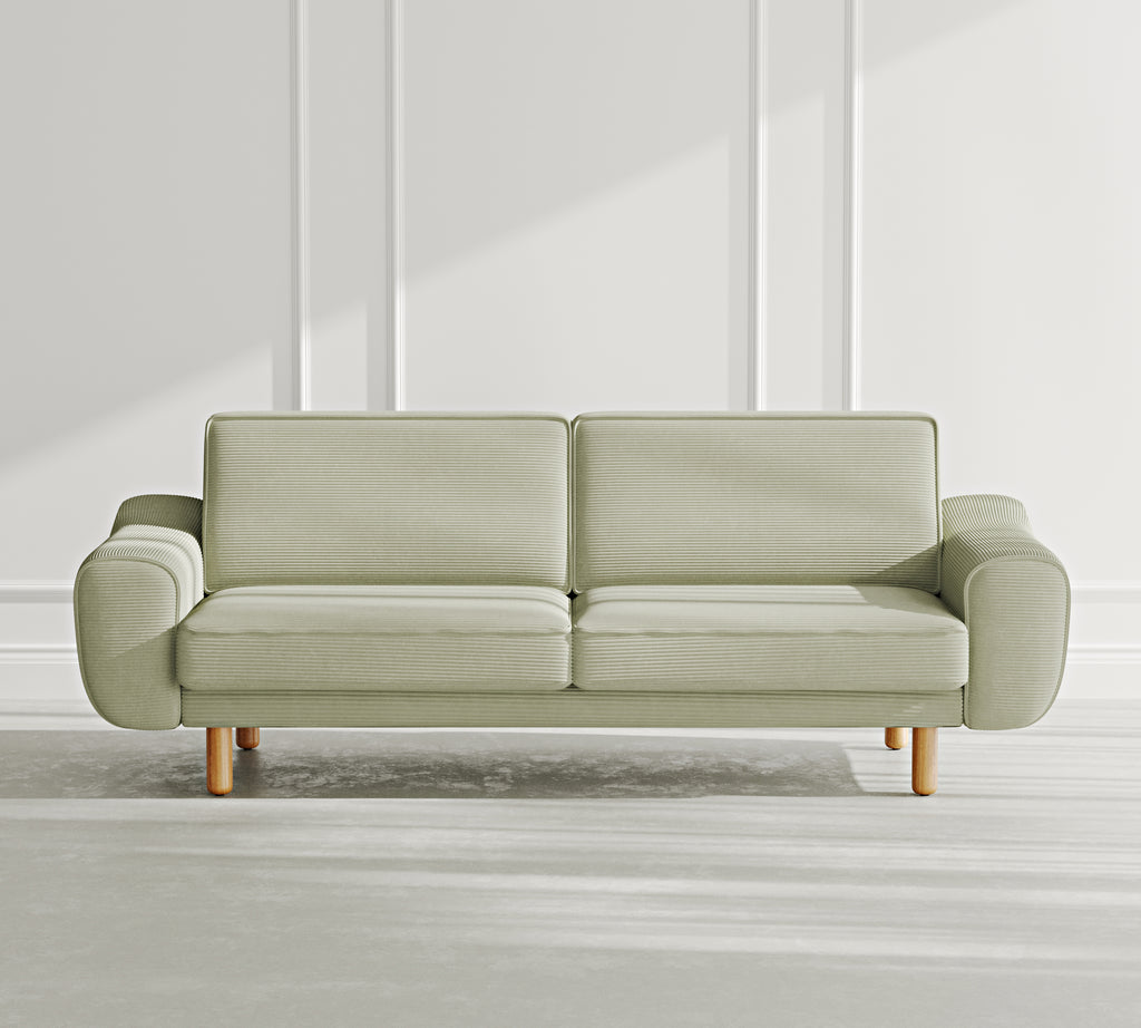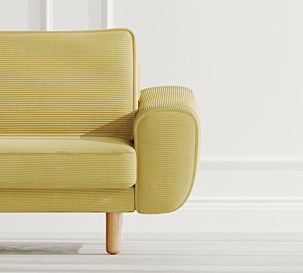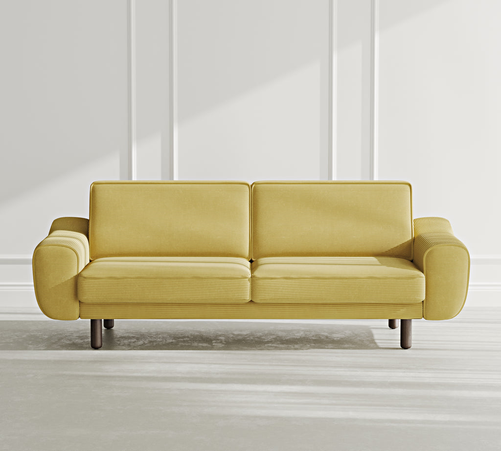 Klem Üçlü Koltuk Silindir Ahşap Ayak - Fitilli Kadife