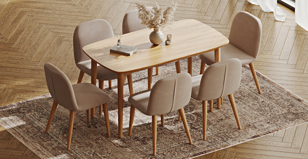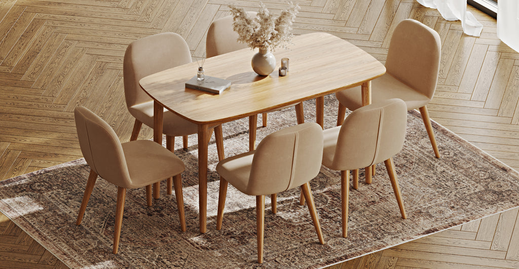 Lyno 77x140 Sabit Yemek Masası Takımı (6 Venn Sandalye) - Kadife