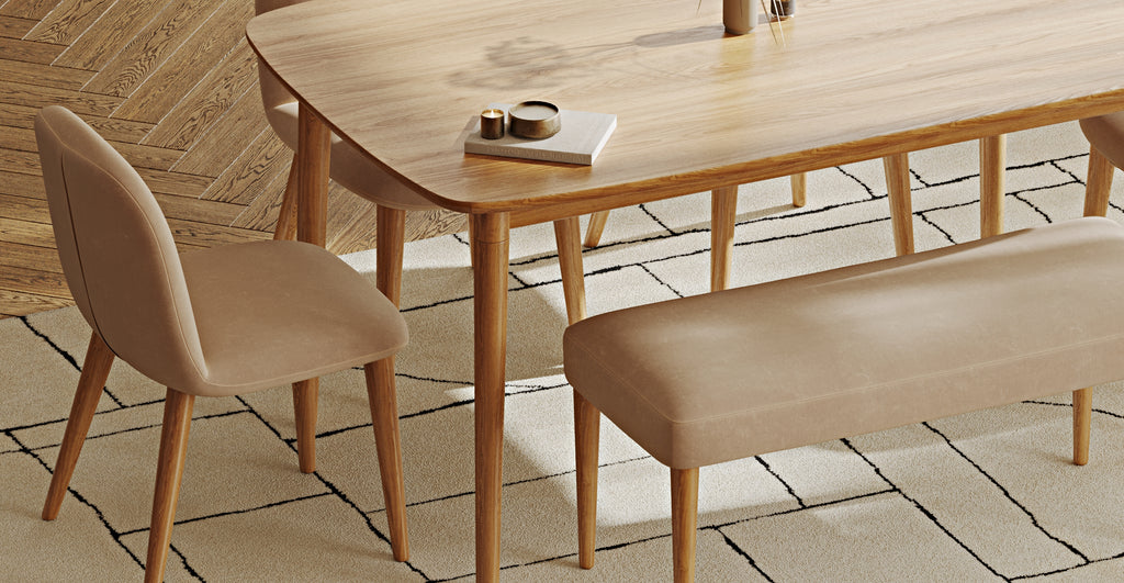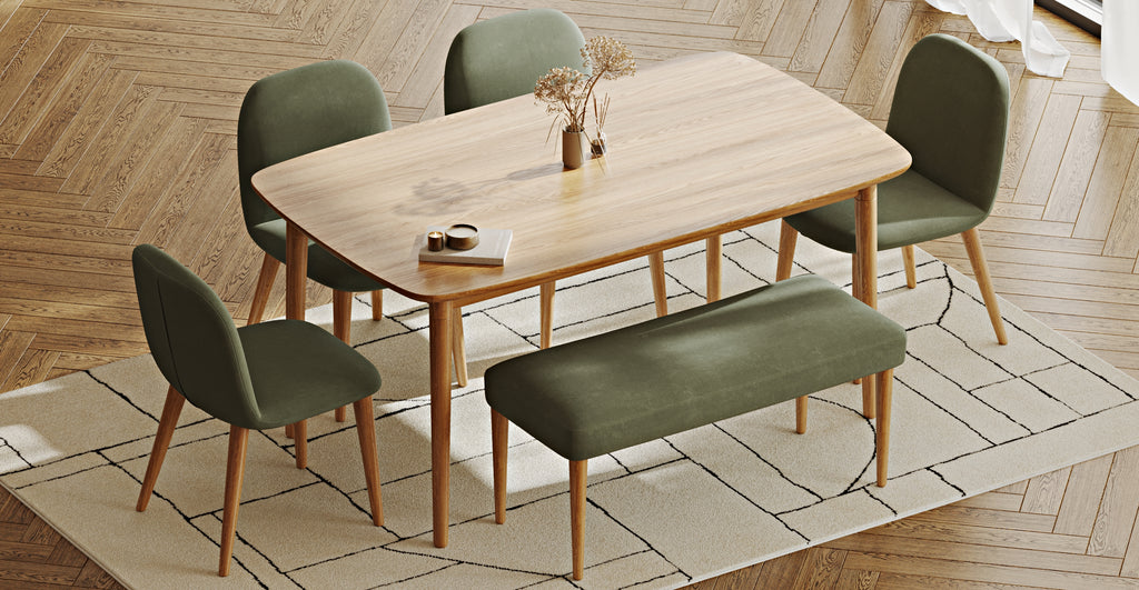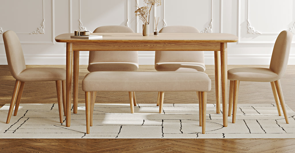 Lyno 97x160 Sabit Yemek Masası Takımı (Roa Bench & 4 Venn Sandalye) - Kadife